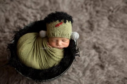 This is a pdf knitting pattern, written in English and using standard US terminology, for you to knit a Frankenstein hat photo prop.