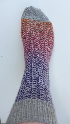 Ein ausführliches und übersichtliches Sockenmuster, optimiert für Mini Rundnadeln wie die Sockenwunder von Addi. Für 4-fädige Sockenwolle Sockentabelle im Anhang von Gr. 22-49 Afterthought-Heel / Nachtragsferse genau erklärt. Ungewöhnliche Abnahme für Ferse und Spitze. Kitchener Stitch erklärt. Einfarbig, mehrfarbig, oder mit Verlaufsgarn, Waldemar wirkt! Für Männer, Frauen & Kinder geeignet.