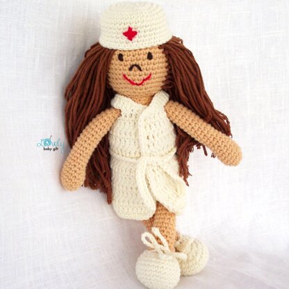 Free amigurumi pattern to crochet an adorable nurse doll for little girls.