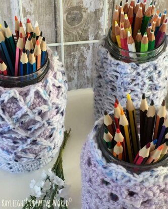 Jazz up a Jar with a Josy. Upcycle old jars by turning them into stylish storage containers. By adding these simple Josy's a plain jar becomes something else. You can even mix and match colours. It is also great for using up leftover yarn.
