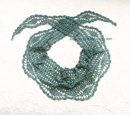 Fresh Pineapple is my own fresh interpretation of the traditional crochet pineapple motif stitch pattern, and I have added it as an edging for a scarf that is crocheted from side to side. This pattern takes my side to side construction technique and steps it up a notch! The two stitch patterns of the scarf form a shallow crescent-like shape, with the pineapple motif edging crocheted on the bottom edge of the scarf as you crochet through the rows. You will crochet a 14-row repeat that is easily memorized that includes the edging and the body of the scarf.