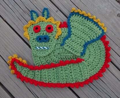 Friendly Dragon is fun to crochet and makes a cute decoration or applique. Instant download of a 17 page PDF with detailed instructions and photos. Worked in Red Heart Super Saver in: Tea Leaf #E300-0624 (60 yds.), Jade #E300-3862 (4 yds.), Gold #E300-0321 (6 yds.), Cherry Red #E300-0319 (10 yds.), Black #E300-0312 (1/2 yd.), White #E300-0311 (1/4 yd.). Perfect to hang on the wall, use as a table decoration, or use it as an applique on a unique sweater, quilt or blanket. Measures about 12” across at the widest point and about 9.5” tall from bottom of the tail to the tip of the ears.