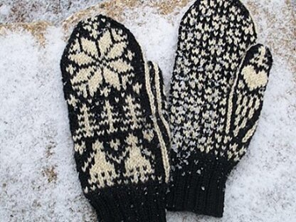I was inspired to create this mitten to honor a friendship that has existed for almost 40 years. We met as freshmen in college and our friendship has continued for these many years. Evergreen trees and girls holding hands--symbols of our friendship woven with those sisterly bonds she shares with many others. This one's for you, Susan my friend!