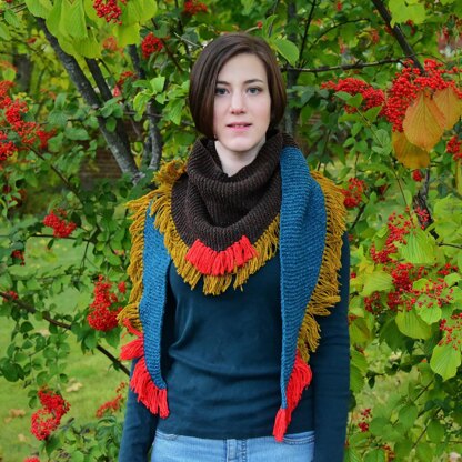 This scarf is inspired by the fun, expressive accessories that you see on the streets of Brooklyn as the weather begins to change. Worked in 2 weights of yarn, it is a perfect way to play with color and use up some single skeins left over after larger projects. Pattern contains photo tutorials to help you tie the fringe.