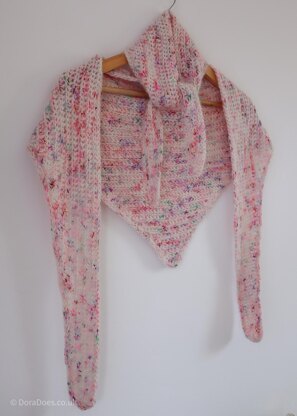 Frivolity is a fun 2 for 1 crochet scarf pattern. Max Frivolity is a twist on the classic triangle shawl or headscarf with an extended wingspan for easy, everyday wear. Frivolity Mini is a smaller, shallower neckerchief for milder days when you’re feeling just a little bit fancy. (And it helpfully uses up the yarn left over from the maxi scarf)