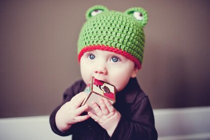 Ribbit, Ribbit! Perfect hat for that little boy in your life. Makes a great hat and photo prop. Easy to follow and quick to complete.
