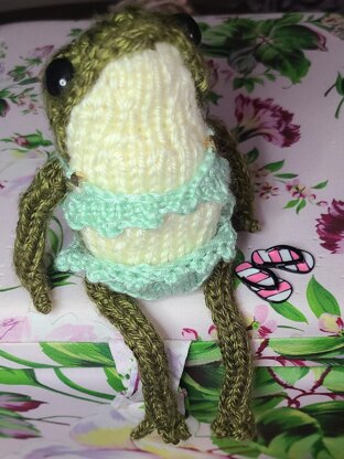 Supplies: Yarn and needles to match guage of frog Embellishments if desired