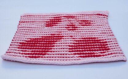 Illusion knitting is simple and effective. If you look from above you see stripes, viewed from an angle a pear, an apple and some cherries appear. This is a fun, colourful project to brighten up your home.