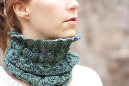 Worked in the round with a dramatic cable and a soft yarn made for burrowing, this is going to be your wandering cowl.