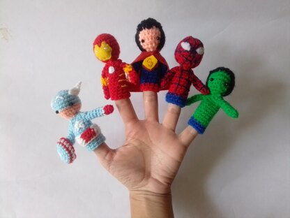 You will receive 1 PDF file of 5 Superhero Amigurumi finger puppets full
