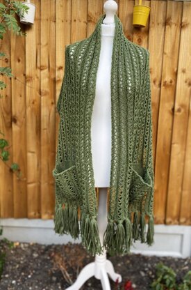 Funaria is a wide lacey scarf that knits up super quick and best of all it has pockets!