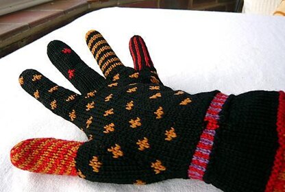 A detailed chart is provided, but you will have more fun if you make up your own modifications. Does your glove call out for a striped index finger? Stripe it!
