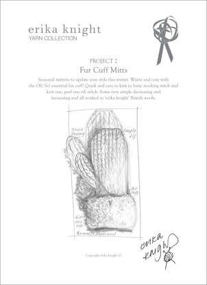 Fur Cuff Mitts in Erika Knight Fur Wool ist eine Anleitung zum Knitting von Erika Knight, die als Broschüre in den folgenden Sprachen verfügbar ist: Englisch. Besonders geeignet ist sie für alle, deren Können bei Fortgeschritten einzustufen ist. Probiere sie noch heute aus und kreiere dein nächstes Meisterwerk!