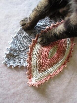 Furballs' Simple Eyes 3 is a 11.5" x 6.5" / 29 cm x 16.5 cm oval / eye shaped dishcloth made with simple stitches. It can also double up as coaster. It is written in one (1) colour and one (1) string, and suitable with self stripe yarn. Quick and fun to knit.