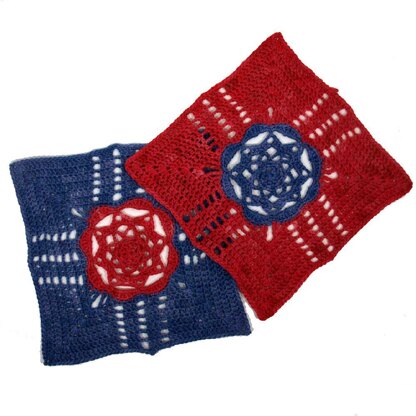 This 8X8 square features a pretty motif center and works up in your favorite fingering weight yarn. Use any color combinations to give it your own special look. This delicate square would be lovely for a shawl, wrap, or just a light throw. Use your imagination!