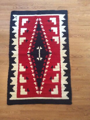 Navajo design originating in Ganado area of the Reservation. It became known as “Ganado Red” because of the usual red background used in this type rug.