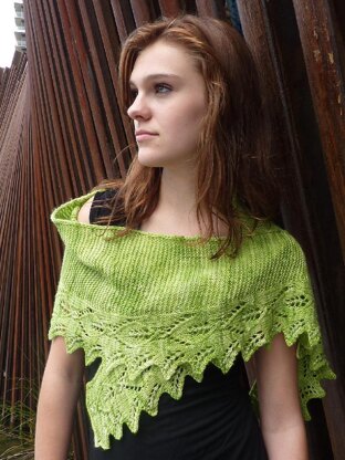 Garland is a crescent shaped shawl, knit from side to side. The lacy border is knit at the same time as the garter stitch body, which increases from one end to the center and then decreases to the other end. Optional beading along the leaves’ center veins adds sparkle and weight for drape. This shawl can be knit as a wide, shallow crescent, or a deeper, more traditionally shaped crescent. Knitter’s choice!