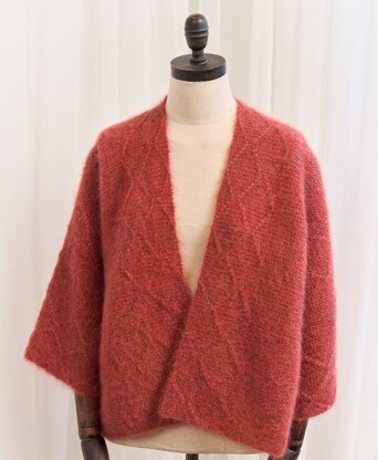 To celebrate 25 years of Kidsilk Haze, Georgia Farrell has reimagined her much-loved Garter Stitch & Diamonds Jacket using the rich shades Burnt Orange and Walnut. A strand of each colour is held together throughout, creating a subtle marl effect, demonstrating the true versatility of this yarn and its colour palette. This striking open-fronted jacket features a diamond cable pattern at each front edge, whilst wide sleeves and oversized side vents make for an easy-to-wear and casual fit.