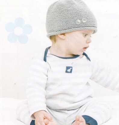 This is a pattern for a Garter Stitch Hat and Booties. They are in simple garter stitch with stocking stitch edges, and buttons to decorate. You will need 1 x ball yarn for the hat and 1 x ball for the botties. Photos Knit Today.