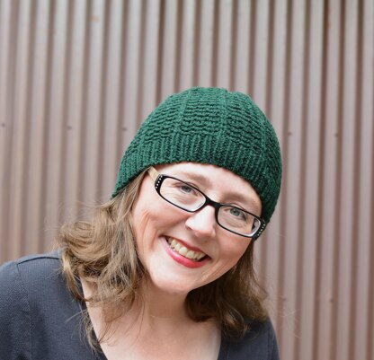 The rough texture of the pattern stitch here just really puts me in mind of the gorgeous alligator hides used in leather goods. The texture is separated with knit spines that meet at the top of the hat to make a lovely crown. The texture adds interest to a solid colored yarn or serves as a good background for a variegated version.