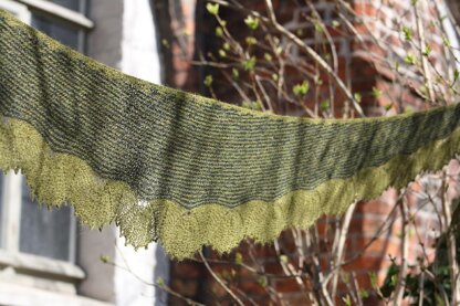 The scarf is inspired by leaf buds. "Gemma F." is short for the latin term gemma follipara, which means just that, leaf buds. It is a great knit for spring and should keep your neck warm all through summer!