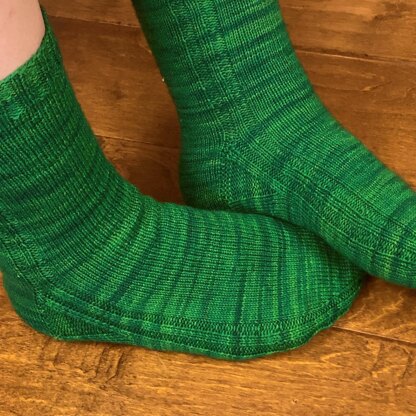 This sock came about over a lot of trial and error to find the perfect balance between great fit, and easy and fun to knit. We all know ribbing helps keep the sock hugging the foot, but it’s tedious to knit. A line of ribbing running the entire length from cuff to toe, plus a purled gusset, means a sock that embraces the entire foot, with just enough detail to keep the knitting interesting.