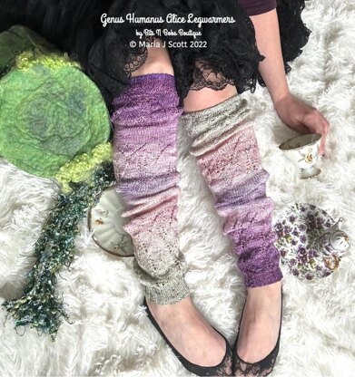 What kind of flower are you? Well, I guess you would call me…a Genus, Humanus…Alice! I fell in love with this leaf patterning, and I equally love Alice In Wonderland’s experience with the flowers. This is a fun, unique way to create some interesting stitches without having to make a huge shawl. Fall is upon us and these leg warms would compliment any fall outfit. Have your friends raving about your ravishing leg warmers. Have you ever seen an Alice with stems like that?! Now you have!