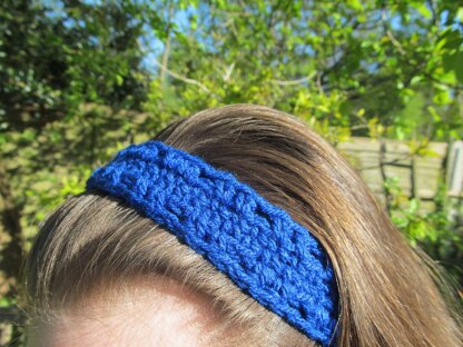 This pattern makes a pretty, comfortable headband with a geometric square pattern. It is made in one piece using simple crochet stitches.