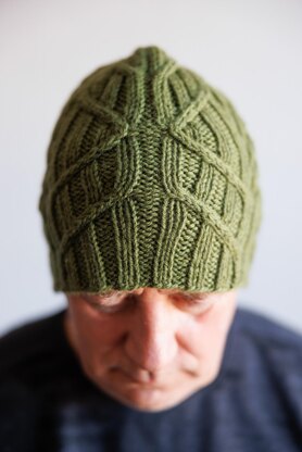 This is a splendid beanie type hat named by my father George (for whom it was designed). It is ribbed based, featuring easy, yet gorgeous looking big cables balanced by some simple geometrical shapes look.