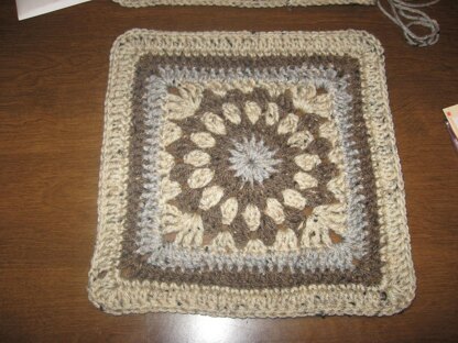 Georges Granny in a 10 inch square I designed for a swap in the Ravelry group called Vannas Choice Fan Club. You can use it in any color. To change the size simply add a few more rounds of dc to get to a 12 inch square. Ideally if you change the hook size to a G or H you may get an 8 inch square.