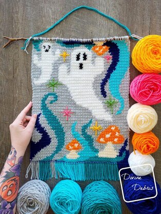 Do you need a cute Halloween wall hanging in your life? Maybe a “no so spooky” ghost or 2? Well, you’re in luck with the Ghosts of the Blue Lagoon Wall Hanging - it’s a fun and colorful home decor piece that’s worked from the bottom up in rows. I suggest separate strands of yarn for each color and changing them along the back (that way the front stays nice and tidy). And of course, add some fringe and stars to really make the whole pattern pop :)