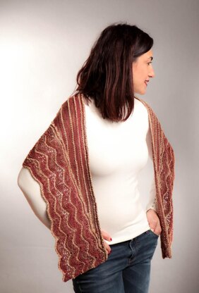 The Gilded Rose Shawl is a statement piece you’ll love to wrap yourself with. The design combines carefully placed rows of straight and wavy lines, creating visual interest with a sense of movement and flow. Pulling it all together is stockinette, garter, and lace, turning the “traditional” into a modern classic.