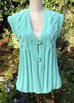 This beautiful gilet, crafted in a luxurious chenille yarn, will keep you cosy and stylish throughout the autumn and winter months. The lower section features wide ribbing worked up to the bust, where it transitions seamlessly into an striking cable pattern for the upper body. This change in patterning gently shapes the garment for a flattering fit. The front and armhole borders are knitted as part of the main piece, minimising sewing up. The design is worked from the bottom up and includes full written instructions.