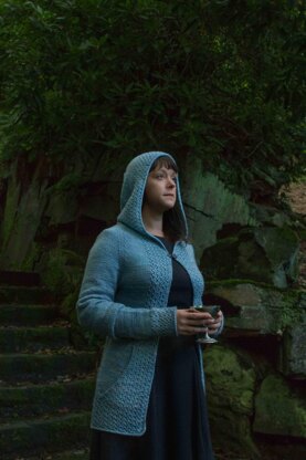A long elven cloak for when the nights draw in and the temperature starts to fall. A wide cuff and a little clasp give the pretty detail to this cloak, with its integrated pockets and enveloping hood.