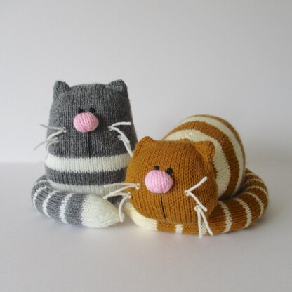 What a pair of lazy fat cats! Ginger, the orange striped cat, is having a little lie down, (they could make a sweet doorstop) and Smudge the grey cat is waiting for a head scratch (they could also be used as a bookend). Designed by Amanda Berry @fluffandfuzz, the cats are knitted in acrylic DK yarns on single pointed needles (not in the round). Smudge uses kitchener stitch, an invisible grafting technique, to finish the top of their head. For confident beginners and above, other techniques used include casting on and off, knits, purls, increases and decreases, knitting stripes, and seaming to finish.