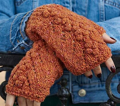 Trendy Tweedy fingerless gloves with a lovely lace / bobbly insert running down the centre of each glove.