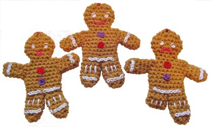Three amusing versions of a gingerbread man. These make great toys but can also be used as Christmas tree decorations with the addition of a little ribbon. No toy stuffing needed as these are quite flat which makes them easy to post as a large letter.