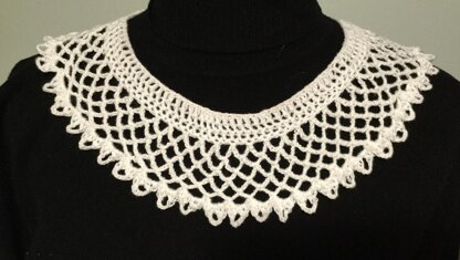 The collar has : Inner diameter of about 5.5"(13cm); outer diameter of about 11"(27.5cm) and the crocheted band is about 3"(7.5cm) in width.