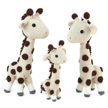 The pattern is richly illustrated and contains the instructions for the big and small giraffe. The body and legs are made out of one piece.
