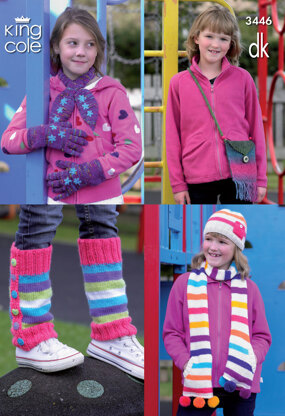 Girl's Hat, Scarves, Gloves, Bag & Legwarmers in King Cole DK - 3446