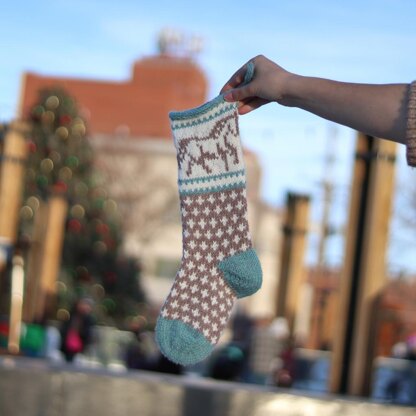 This stocking is started with a short row toe, instead of the traditional toe-up cast on's. This gives the stocking a rounded toe. Stranded colorwork in the round is an easy way for beginners to learn the technique and works up pleasurably for more advanced knitters. The heel is a short row heel, giving the advantage of the traditional look of a contrasting color and ease of knitting. Binding off with an I-cord bind-off gives a clean finish with an added I-cord hanger for display purposes. The pattern includes 12 ready-made charts and blank chart templates. This stocking is a great step for those who haven't ever worked a sock before, as it teaches all the basic techniques.