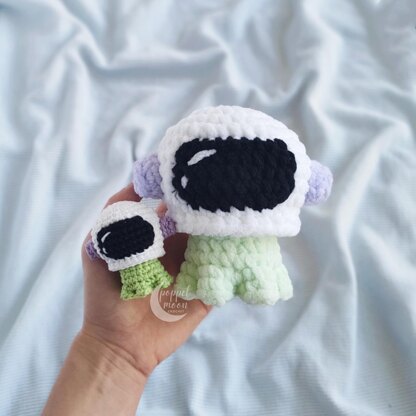 Prepare for this cute, mischievous little alien to invade your heart! Make him as a tiny keychain with sportweight yarn or cuddly and soft with super bulky weight plush yarn! This 6-page amigurumi crochet pattern is low sew, easy-to-follow, and quick to make! It includes detailed instructions and lots of pictures, as well as a video tutorial for crocheting the tentacles, so you can make your own army of cute aliens in no time! To make this pattern, you should know how to increase, decrease, work in the front loops only or back loops only, and change colors. LANGUAGE: English (US crochet terms), SKILL LEVEL: Advanced Beginner, SIZE: 2.5" (6.5cm) tall with sport weight yarn/2.5mm hook or 5.25" (13.5cm) tall with super bulky weight plush yarn/6mm hook, MATERIALS NEEDED: Hook: 2.5mm or 6mm, Yarn: Omega Sinfonia sportweight yarn or Alize Velluto super bulky weight yarn (4 colors), Stuffing, Stitch Markers, Pins, Scissors, Needle for Sewing/Embroidered Details