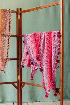 The wrap was designed as the Advent project for Jimmy Beans in December 2021. The original design used 16 mini skeins of yarn, with a new one added to the design each day in the lead up to Christmas. The design is a great stash-buster if you have lots of little bits of left-over 4ply/fingering weight yarn or you could use a curated collection of mini skeins. I think it would also look great worked in a few shades, or even just one!