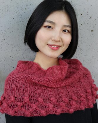 This decorative little capelet is worked in the round with my Affetto Seta. The overhand knots are worked in as you go... no need to break the yarn either!