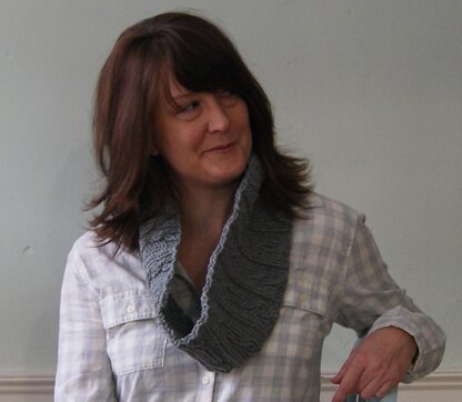 The sample was knit in Osprey by Quince and Co., shade Kumlien’s Gull.