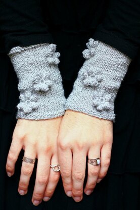 These glamorous gloves make the perfect accessory for any holiday party outfit. Knit in a silvery lightweight yarn, they are adorned with tiny crocheted flowers to add an extra pop of texture. Knit these up for that girl on your list who loves sparkle!