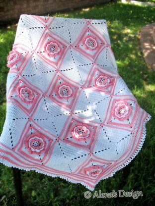 This blanket features a 3D flowers. Afghan is made from 35 squares motifs worked in joined rounds, but you may make an afghan of any size. Enhance the Interior of your Home with this Glorious Flowers Afghan. FINISHED MEASUREMENTS: Square – approx. 6.5"/ 16.5 cm Afghan – 37” x 52”/ 94 x 132 cm