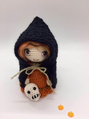 Goblyn from beyond the fairy garden. Last of the Halloween series. Small skull also included. She is approximately 5 inches tall using hook and yarn suggested. Although you may use any hook and yarn. Your Goblyn will be smaller or taller. Pdf file includes lots of photos and helpful links. You will need basic understanding of stitches to complete Goblyn. Materials