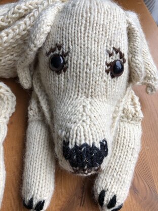 This is a knitting pattern for a Golden Retriever Scarf, based on my dog Buddy. It's not as tricky to make as it looks - you just need to be able to knit in a round with 5 needles (like socks).
