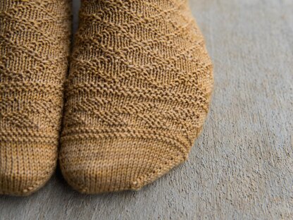 A golden ticket is a special find and so are these socks! Worked from the toe-up, this design uses simple knit and purl stitches to create a gorgeous diamond brocade effect. Bands of reverse stockinette leaves are featured across the instep and around the leg of each sock. Worked in Autumn and Indigo’s ‘LOMAH’ colorway, these socks highlight the rich tonal qualities of this hand-dyed yarn in a color that is sure to make your socks look as luxurious as they feel. Looking for an easy-to-work sock with noticeable impact? This pattern is just the (Golden) Ticket!
